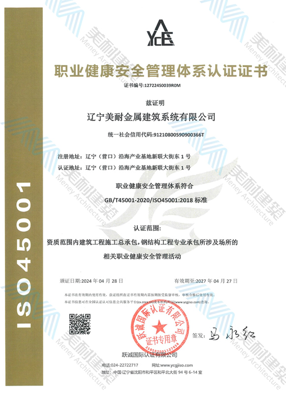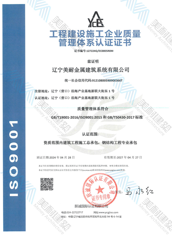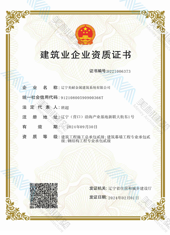遼寧美耐金屬建筑系統(tǒng)有限公司位于遼寧(營口)沿海產(chǎn)業(yè)基地,專注于預制金屬建筑系統(tǒng)領域,是一家集工業(yè)建筑設計、制作、施工及相關的技術咨詢與服務為一體的綜合性服務企業(yè)。作為國家鋼結(jié)構協(xié)會會員、中國建筑金屬結(jié)構協(xié)會會員單位與國家高新技術企業(yè),美耐建筑集建筑工程施工總承包、鋼結(jié)構工程專業(yè)承包等多種資質(zhì)于一身,并擁有22項鋼結(jié)構建筑領域?qū)@?項軟件著作權。